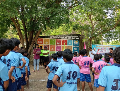 Fr. Vimal ha dato il benvenuto agli ospiti e li ha presentati al pubblico, seguito da un discorso motivante dell’allenatore, che ha spiegato ai partecipanti le regole e l’importanza della sportività. Alle partite di calcio hanno partecipato 77 studenti, divisi in 10 squadre provenienti da Adivaram, Kitchipalayam, chinamapalayam e Mulluvadi Gate.